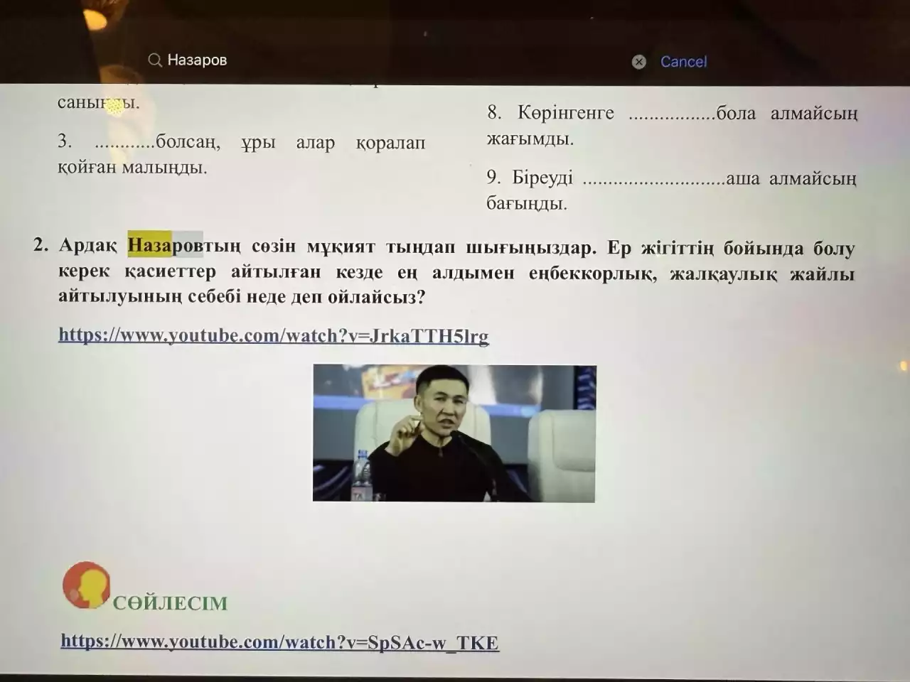 "СДУ деген өзім бітірген тым жақсы университетте Ардақ Назаровты Қазақ тілі пәнінен оқытады екен. Универдің оқулығында жегізбек интервьюларын кәдімгідей талдатып, оқытады. Қызым, бұл қазақ тілі ма?" деп жазған Ислам Амандос оның кітаптағы суреттерін жариялады.